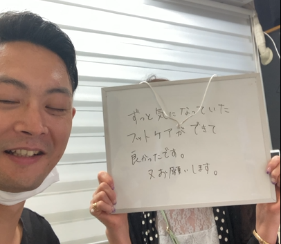 特に、股関節の痛みで足に手が届かない方からは「足裏の角質と足指の巻爪が気になっていたのですが、時間をかけて丁寧にとてもキレイに仕上げてくださりツルツルになりました。